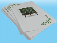 中綴じ製本 用紙のセンターで二つ折りにして重ねて、中央をホッチキス2ヶ所で固定した製本です。用紙1枚で4ページ分となりますので、4・8・12・16というページ構成になります。ページ数の少ないカタログ、パンフレットによく利用されます。 |