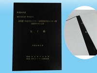 金文字箔押しビス止め製本 表・裏・背表紙の3点セットのハードカバーやダイヤスカーフでの箔押し製本となります。本の厚さに合わせてから背表紙を加工するため、厚さがなかなか決まらない場合に最適です。完成図、竣工図書などに利用されます。 |